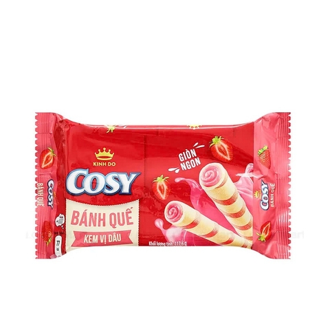 Bánh quế vị kem dâu, Cosy-Kinh Đô có lớp vỏ mỏng, giòn, thơm nồng hương vị kem dâu hấp dẫn mang đến sự thích thú cho bạn khi ăn. Đặc biệt, lớp nhân dâu bên trong làm cho sản phẩm thêm ngon miệng và đặc sắc.