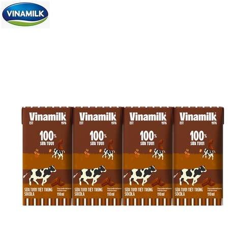 Sữa tươi tiệt trùng socola, 100% sữa tươi-Vinamilk (110ml*4 hộp).