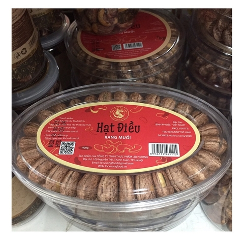 Hạt điều rang muối còn vỏ-Tân Hoàng Long, hộp Elip (400g).