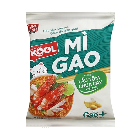 Mì Cung Đình Kool mì gạo lẩu tôm chua cay kiểu Thái 84g, mì ăn liền thơm ngon chính hãng mì Cung Đình Kool với sợi mì gạo và khoai tây đặc biệt, dai dẻo hơn mì, đậm đà hơn gạo mang đến nhiều dinh dưỡng hơn.