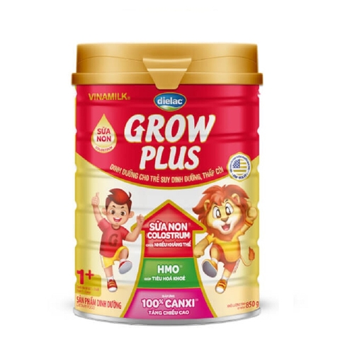 Sữa Dielac Grow Plus 1+ hộp thiếc 850g, nay bổ sung sữa non (Colostrum) và HMO, là sản phẩm dinh dưỡng chuyên biệt từ Vinamilk, được thiết kế hiệu quả cho trẻ suy dinh dưỡng, thấp còi.