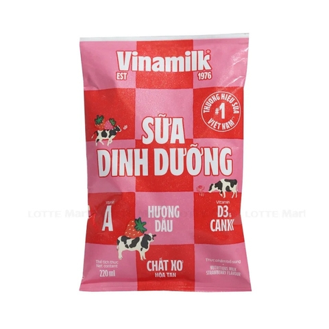 Sữa dinh dưỡng hương dâu-Vinamilk, túi (220ml).